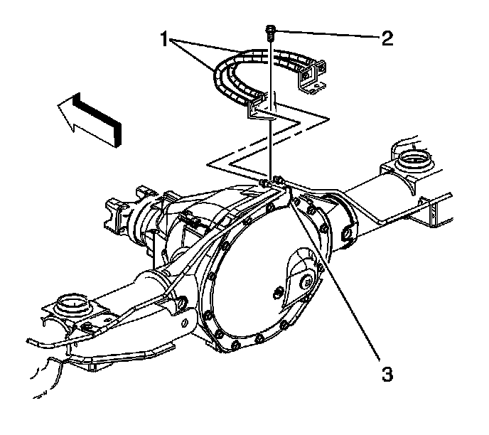 2. Install the brake hose lower bracket and bolt (2) to the axle.
