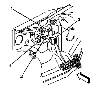 5. Install the stop lamp switch retaining clip (4) to the brake pedal pin (1).