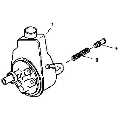 5. Remove the flow control valve (2) and the flow control valve spring (3) from the power steering pump housing (1).