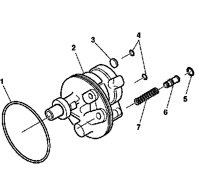 2. Install the flow control valve spring (7) to the pump housing assembly (2).