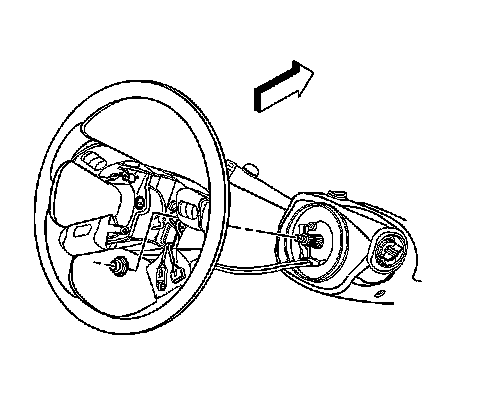Notice: When removing the steering wheel, use only the specified steering wheel puller. Do not hammer on the end of the steering column shaft. Hammering could loosen the plastic injections which maintain the steering column rigidity.