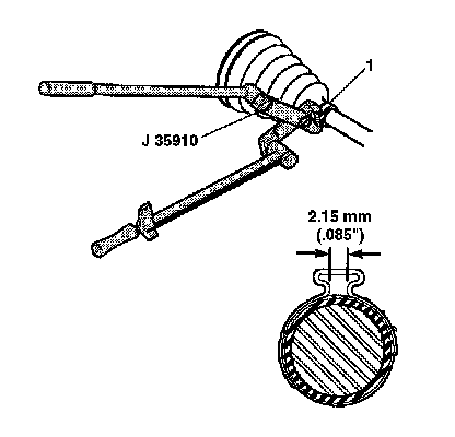 16. Secure the small boot clamp (1) using J 35910 (or equivalent), a breaker bar, and a torque wrench.
