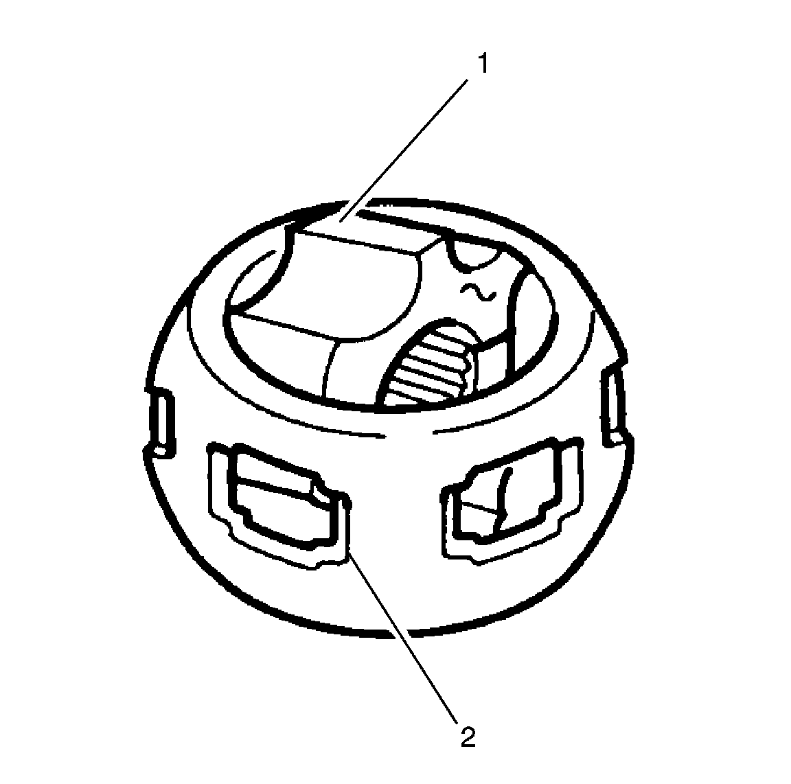 4. Align the lands of the inner race (1) with the windows of the cage (2).