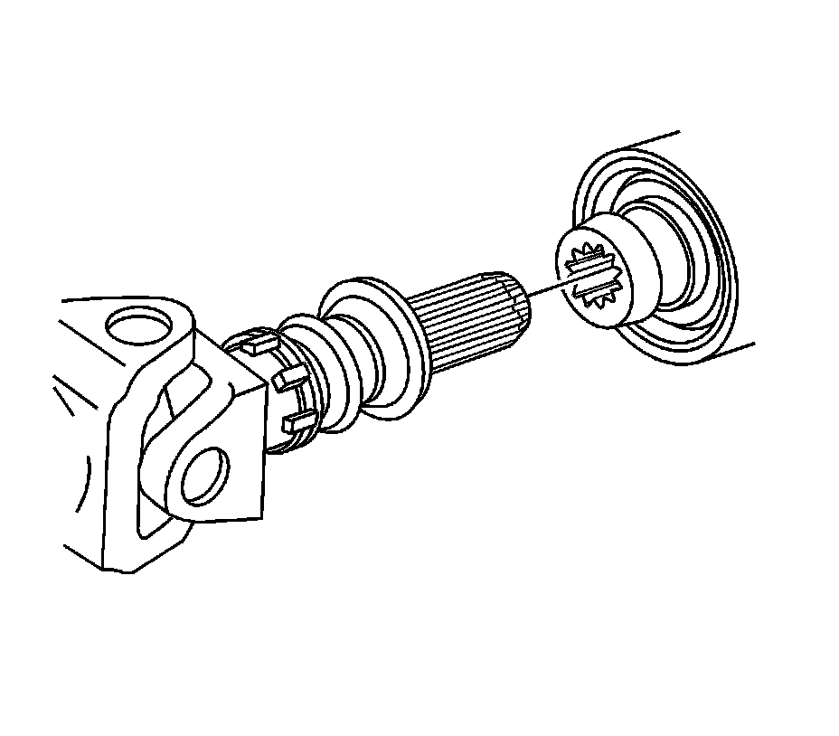 1. Inspect the splines of the transfer case output shaft for a sufficient coating of lubricant. If the output shaft does not have a sufficient coating of lubricant, lubricate the shaft with lubricant GM P/N 12345879 (Canadian P/N 10953511) or with an equivalent lubricant meeting GM specification 9985830.