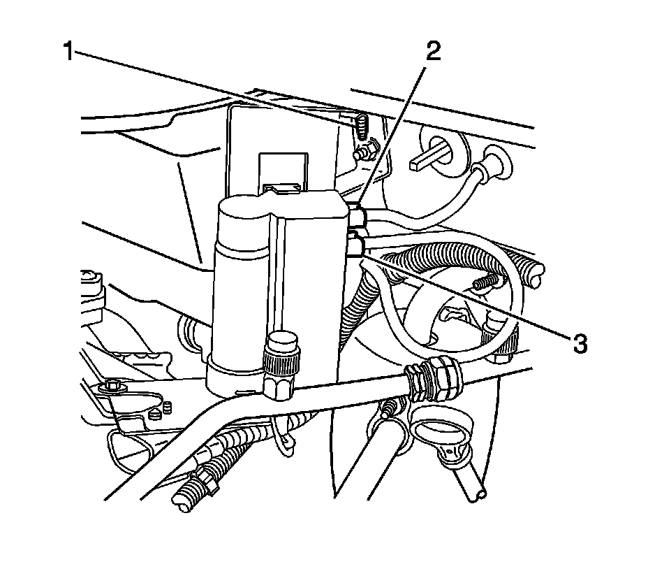 6. Disconnect the lower (inlet) washer container hose (3) from the heated washer pump.