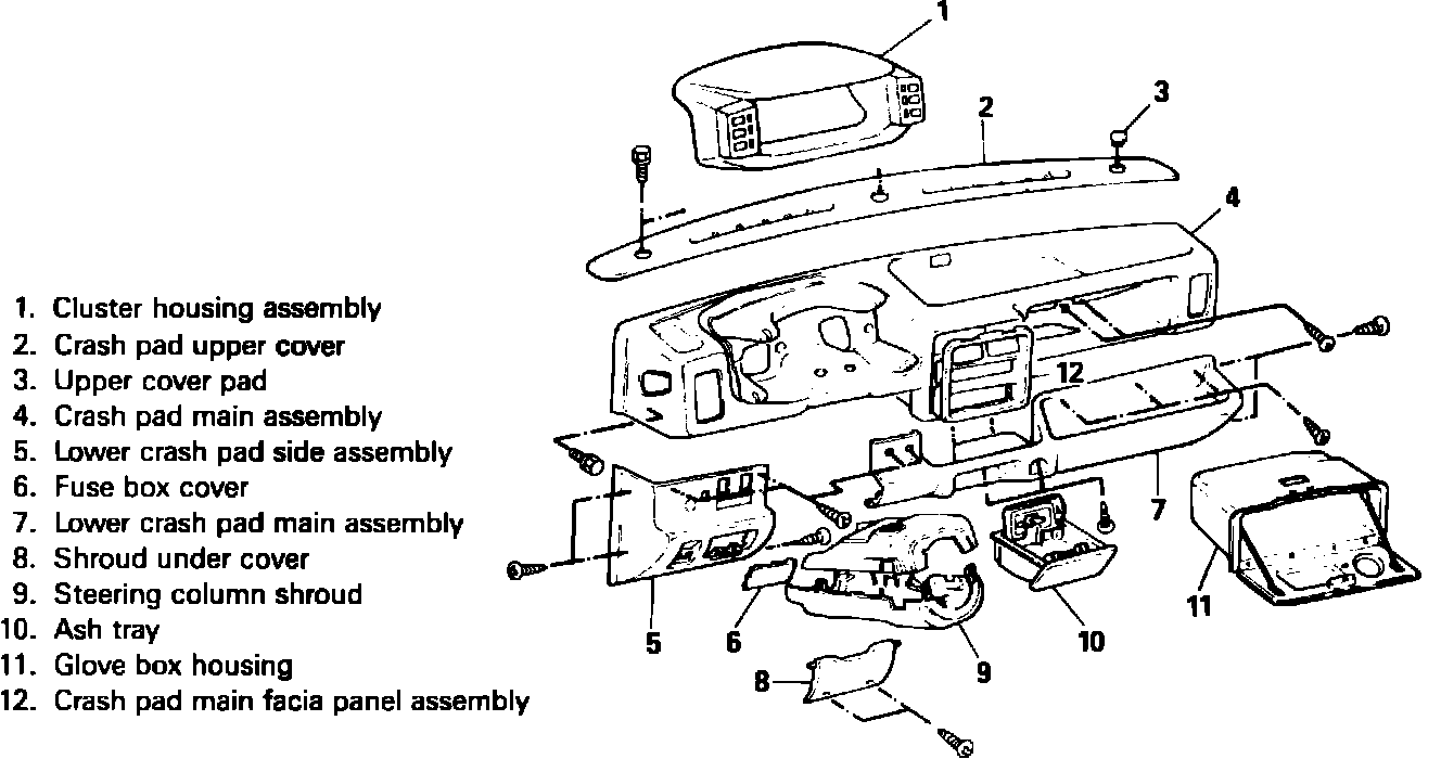3. Disconnect heater hoses at the engine compartment firewall. Remove lower crash pad, Fig. 7.