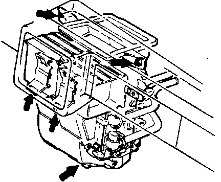 9. Remove heater core retaining screws. Pulling outward, remove heater core from case.