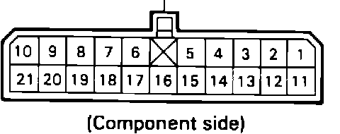 2. Disconnect the connector to the idle up relay (relay M54, located in the relay box, behind the knee bolster on the lower left side of the dashboard) and test terminal 3 for continuity to ground. There should be NO continuity (infinite ohms). If there is continuity, go to step 6.