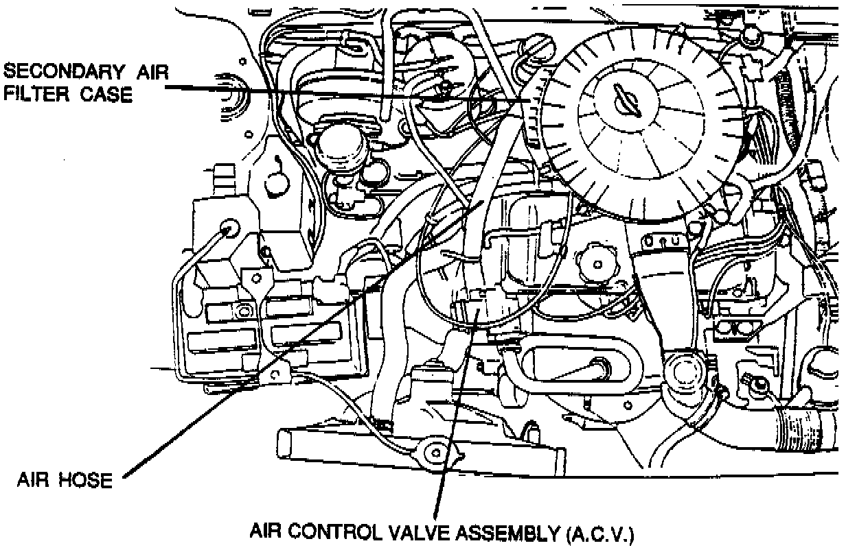 2. If there is no visible damage to either the Secondary Air Filter Case or Air Hose, proceed to, AIR CONTROL VALVE ASSEMBLY (A.C.V.) IDENTIFICATION