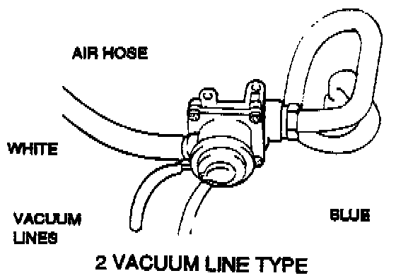 1. Disconnect the air hose and the vacuum line/lines. (On the vehicles with 2 vacuum lines, mark the lines to insure proper reinstallation)