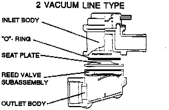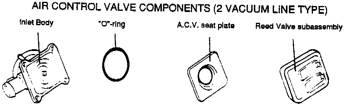 3. Remove the inlet body and the reed valve subassembly. Be careful not to drop the "0"-ring and A.C.V. seatplate used only on the 2 vacuum line type.