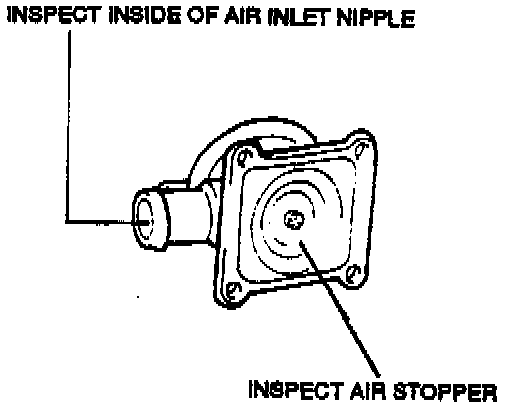 4. Inspect the inside of the large air inlet nipple for the presence of carbon deposits, and the inside of the inlet body for the condition of the rubber air stopper.
