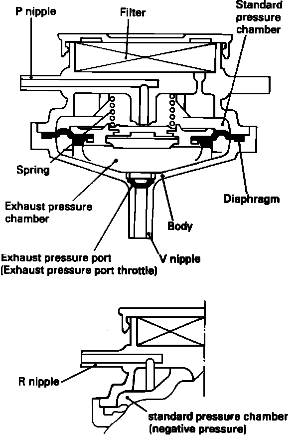 The VRV is used to modify the port vacuum signal that controls the EGR valve. At low engine load the VRV reduces the vacuum signal to the EGR valve.