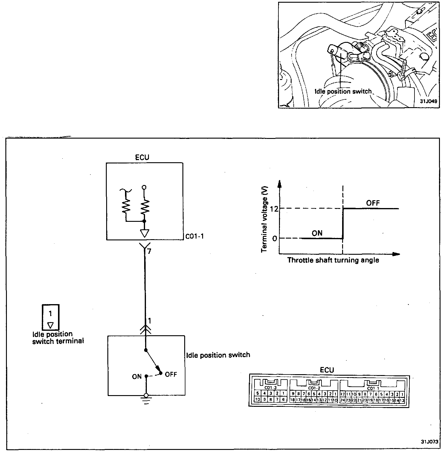 3. Depress the accelerator off the idle position and check for continuity, there should be none (infinite ohm). Release the throttle to the idle position and test for continuity again, there should be continuity (0 ohm).
