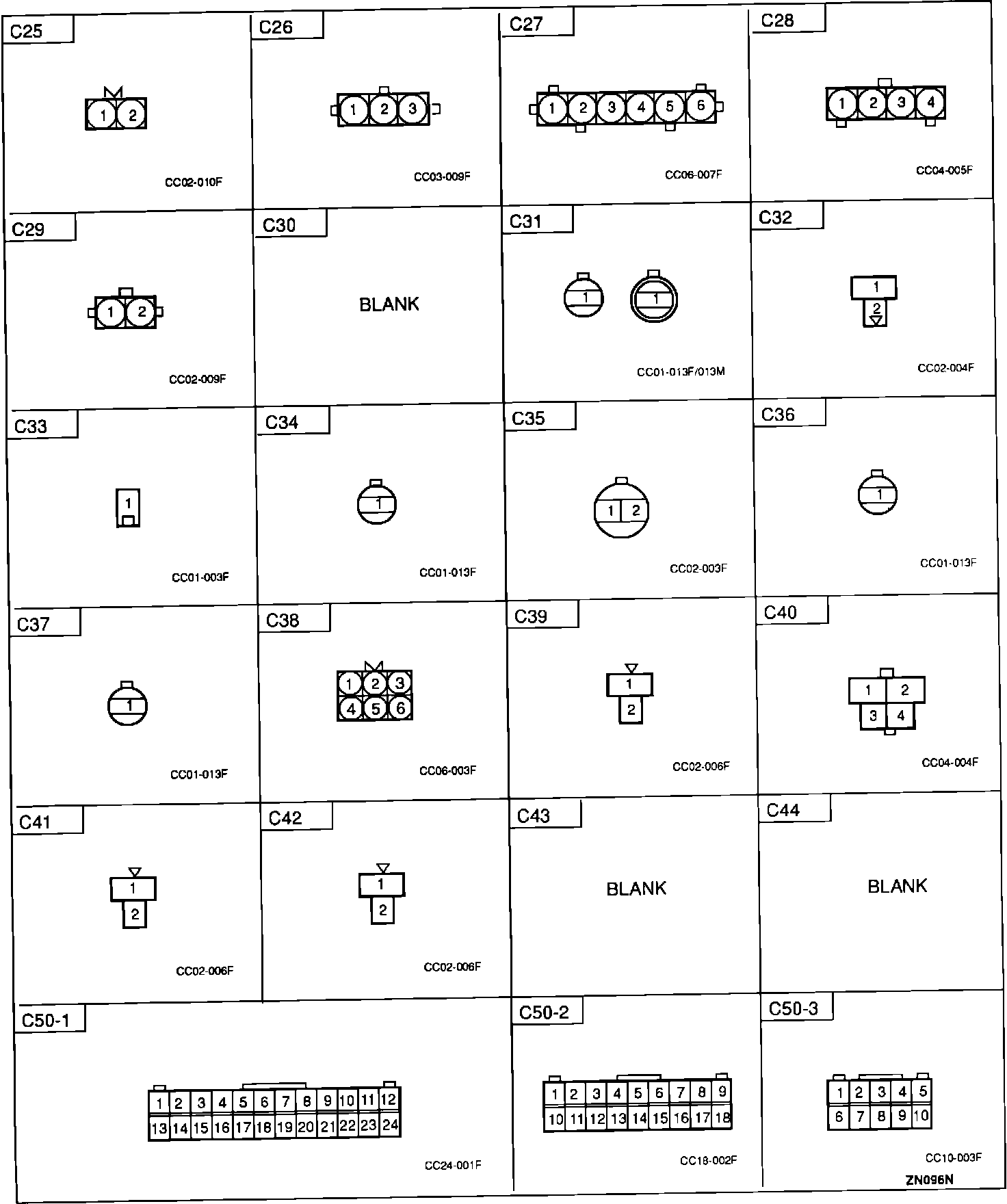 Connector Identification: C25 Thru C50-3:
