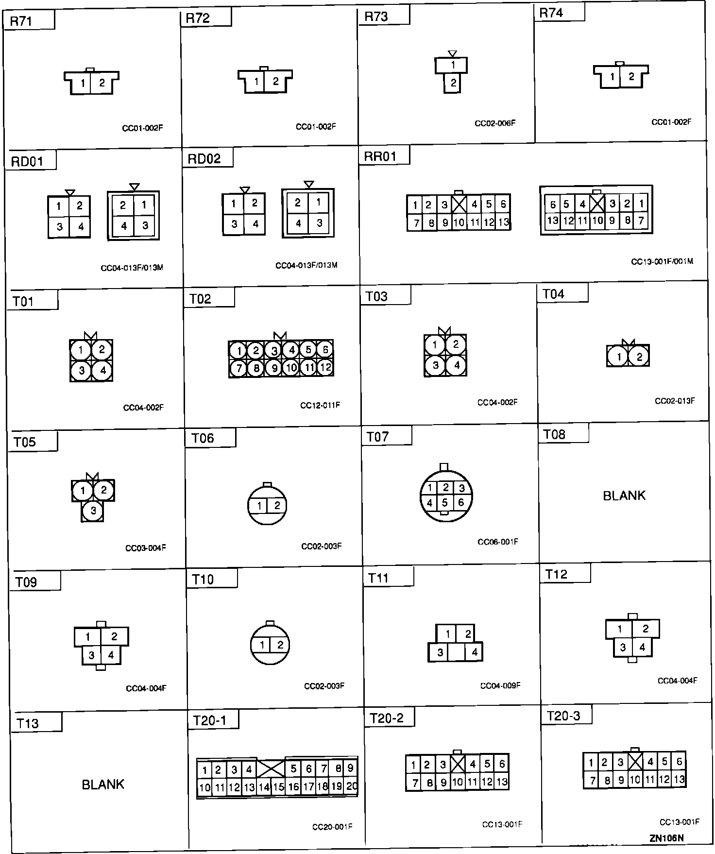 Connector Identification: R71 Thru T20-3: