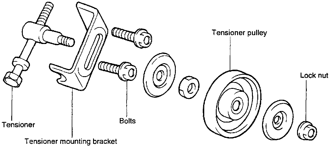 6. Remove the mounting bolt of the tensioner mounting bracket.