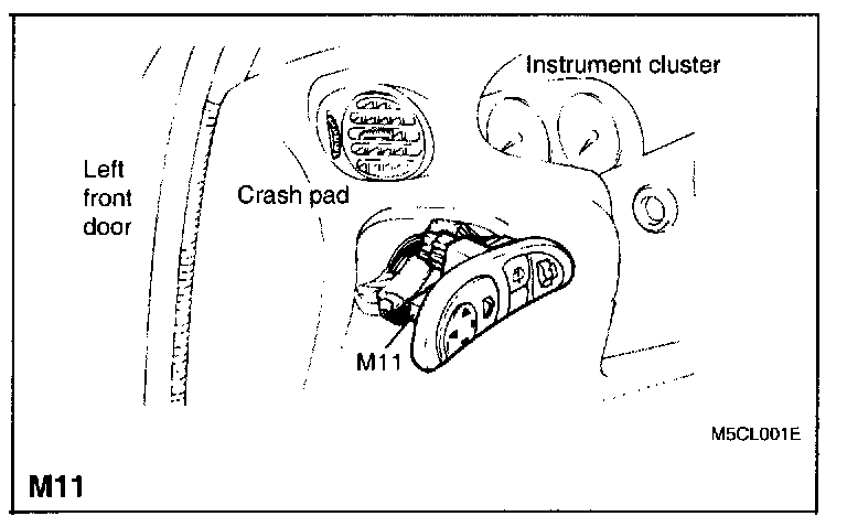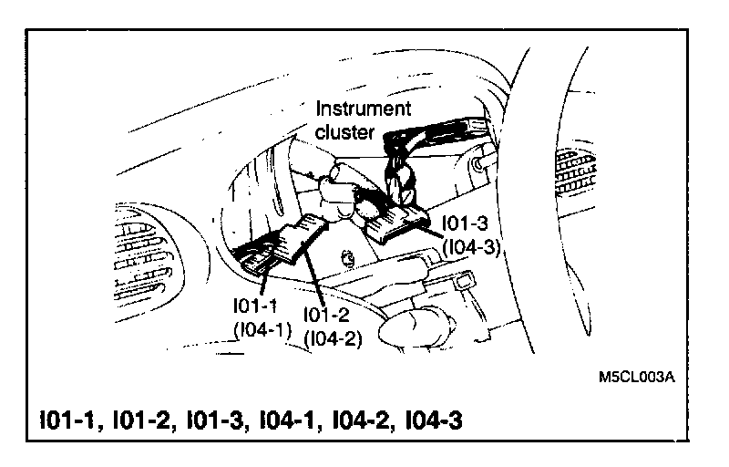 I03 Digital clock, I07 Cruise switch, I08 Rear defogger switch, I11 Rear wiper & washer switch, I14 A/C switch, I15 Blower switch:
