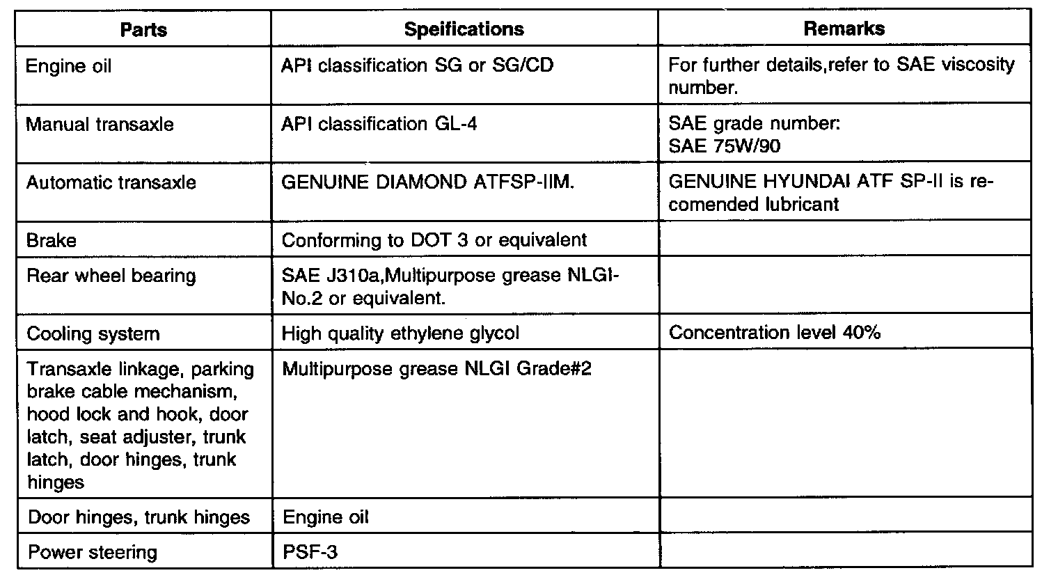 Recommended Lubricants & Capacities