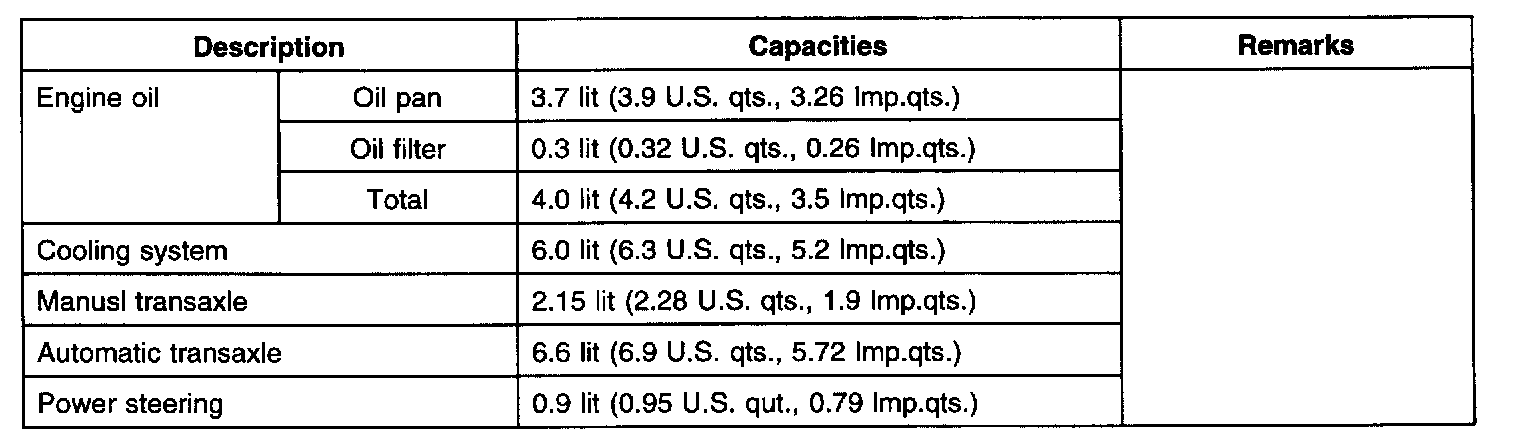 Lubricant Capacities: