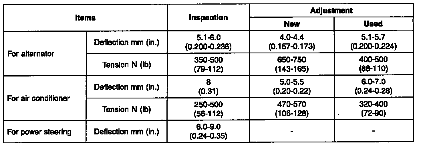 Alternator lock bolt B:............12 - 15 Nm (120 - 150 kg.cm, 9 - 11 ft. lbs.)