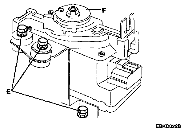 3. Loosen the three mounting bolts(E), and remove the cruise control unit with the bracket(F).