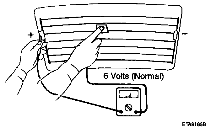 2. If a heater line is burned out between the center point and (+) terminal, the voltmeter will indicate 12 V