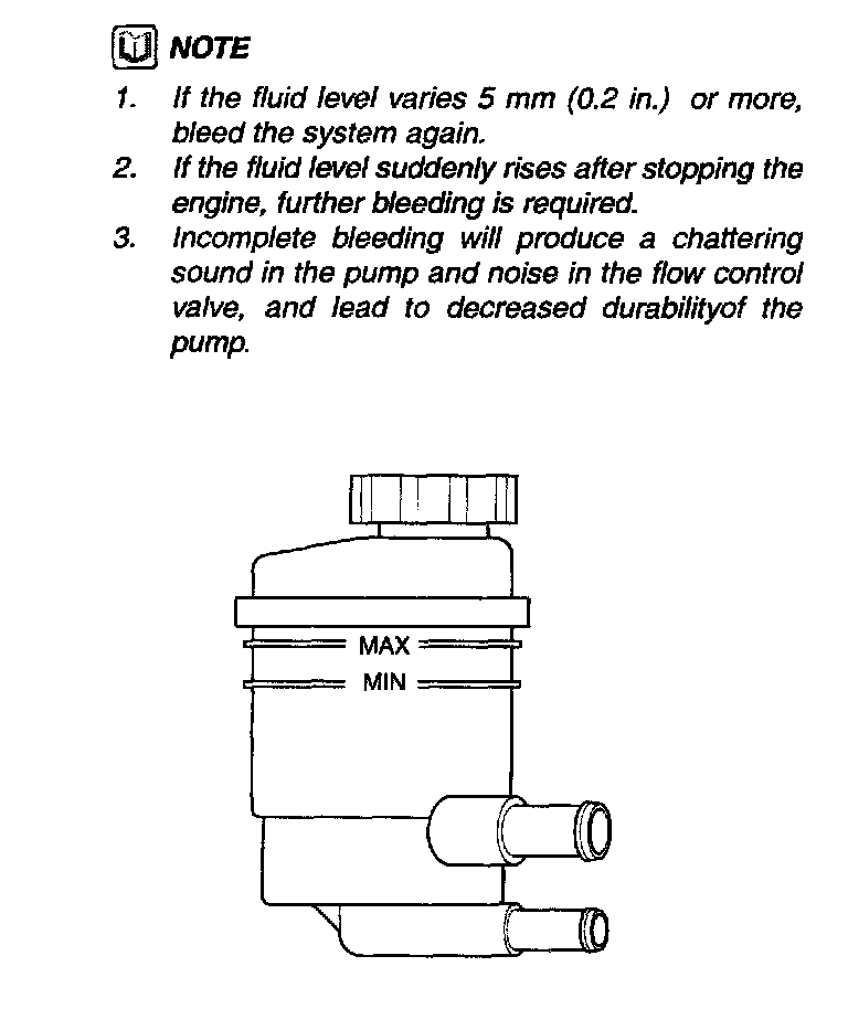 2. Start the engine. With the vehicle kept stationary, turn the steering wheel several times continuously to raise the fluid temperature to 50 - 60°C (122 to 140°F).