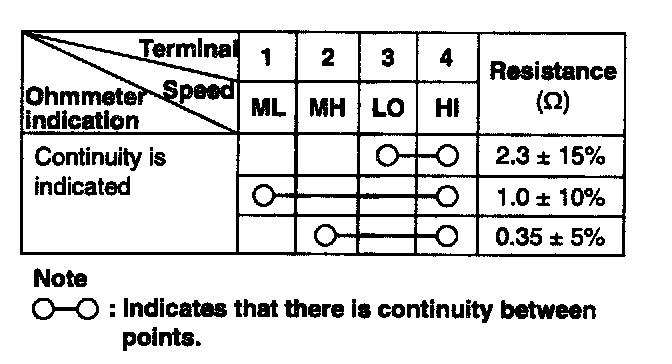 If measured resistance is not within specification, the blower resistor must be replaced. (After removing the resistor)