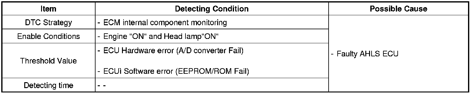 AHLS provides driver with the best visibility by adjusting vertical direction of the headlamp. It consists of AHLS ECU, Linkage and Headlamp actuator. AHLS ECU is composed of many IC components, such as A/D (AD converter), EEPROM, ROM, RAM and others. It also contains several different parameter-sets which defines the behavior in different car types and respect different mounting places. For efficient operation of system, The internal components of ECM (A/D, EEPROM, ROM, RAM) are checked internally during every start-up sequence.