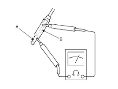 5. Check for continuity between the center pole (A) and outer pole (B) of antenna cable. There should be no continuity.