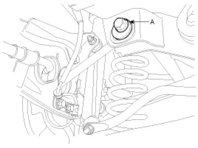 2. Adjust rear toe by turning the rear assist arm cam bolt (A) clockwise or counter clockwise. Toe adjustment should be made by turning the right and left cam bolt by the same amount.