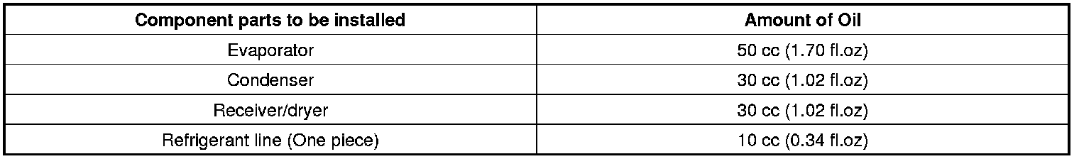 When replacing the system component parts, supply the following amount of oil to the component parts to be installed.