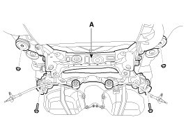 8. Loosen the bolts and nuts and then remove the sub frame (A).