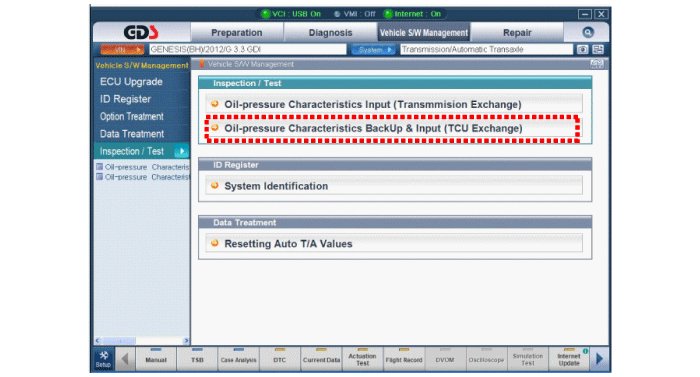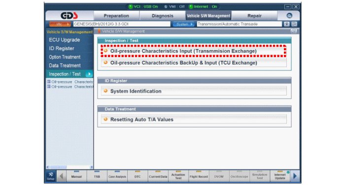 When shift shock is occurred or parts related with the transaxle are replaced, EOL should be performed.