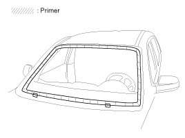 - Never touch the primed surface with your hand. If you do, the adhesive may not bond to the glass properly, causing a leak after the windshield glass is installed.