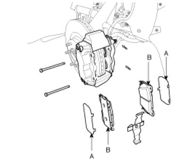 1. Check the pad wear. Measure the pad thickness and replace it, if it is less than the specified value.