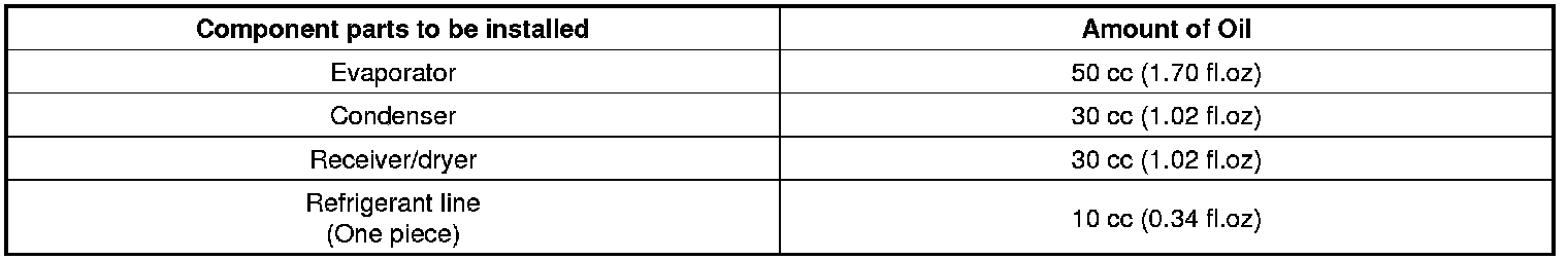 2. Compressor (PAG) oil varies according to compressor model. Be sure to use oil specified for the model of compressor.