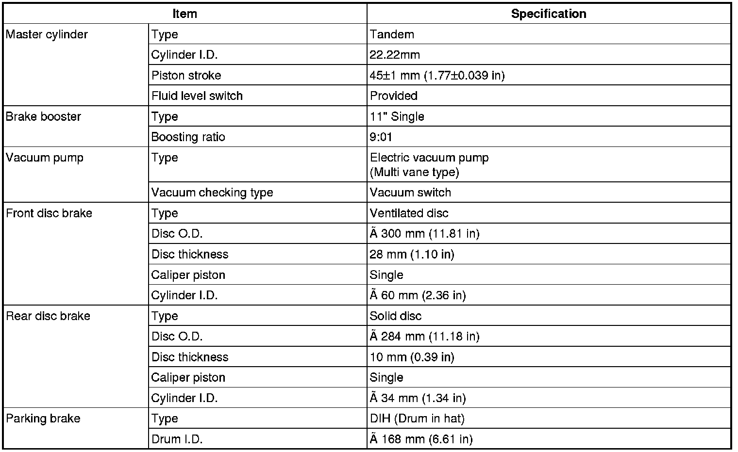 Brakes and Traction Control: Specifications