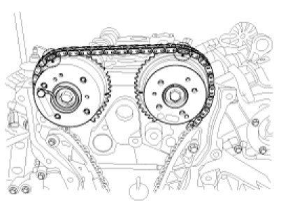 1. Check the camshaft sprocket and crankshaft sprocket for abnormal wear, cracks, or damage. Replace as necessary.