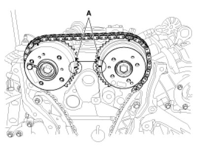 The timing marks of each sprocket should be matched with timing marks (color link) of timing chain when installing the timing chain.