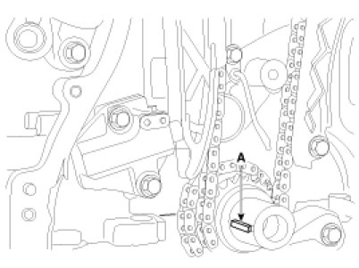 5. Install the timing chain. To install the timing chain with no slack between each shaft (cam, crank), follow the below procedure.