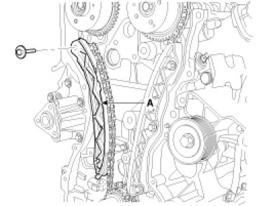 2. Inspect the tensioner arm and chain guide for abnormal wear, cracks, or damage. Replace as necessary.