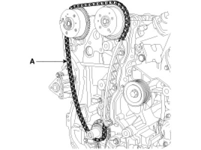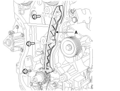 29. Remove the timing chain cover (A) by gently prying the portions between the cylinder head and cylinder block.