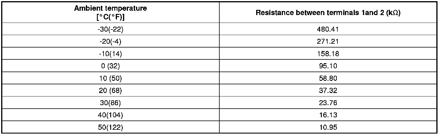 3. Check the resistance of ambient temperature sensor between terminals 1 and 2 whether it is changed by changing of the ambient temperature.