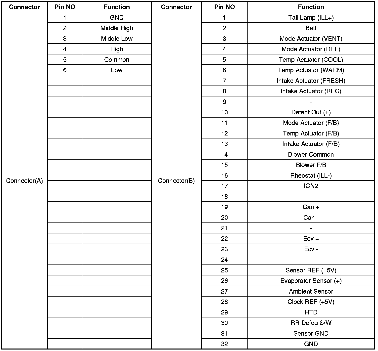 Connector pin function