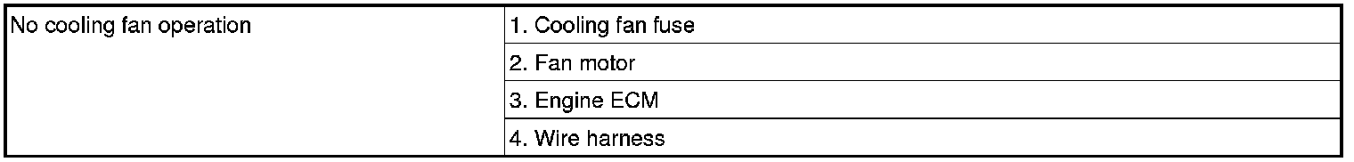 Use the table below to help you find the cause of the problem. The numbers indicate the priority of the likely cause of the problem. Check each part in order. If necessary, replace these parts.