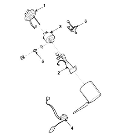 2. Disconnect the electric pump wiring connector (A) and the fuel sender connector (B), and then remove the fuel sender (C).