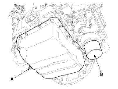 (2) After lifting the car, remove the oil drain plug (A) and drain oil into a container.