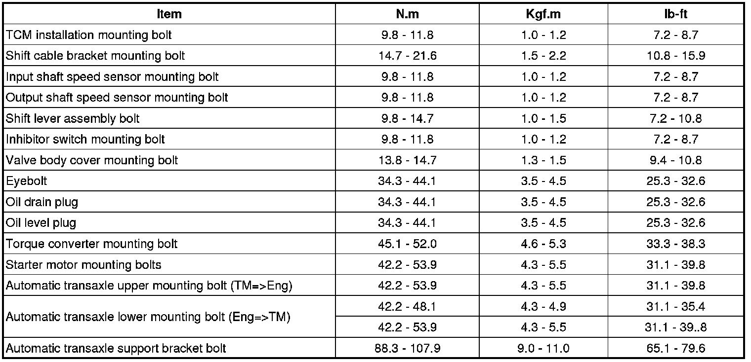 Tightening Torques